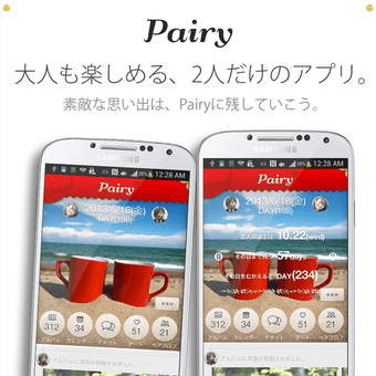 カップル専用アプリPairy-恋人との思い出・記念日カウントは、カップルでの利用に特化したコミュニケーションアプリです。2人だけで使える専用チャットやアルバムなどは、外部から見られないようセキュリティにも配慮がなされています。保存した全ての写真には「付き合って何日=DAY」が表示されるほか、デートスポットの検索・登録が便利な「デート機能」、恋人とのプロフィールを作る「ペアプロフ機能」などカップルならではの機能が充実しています。